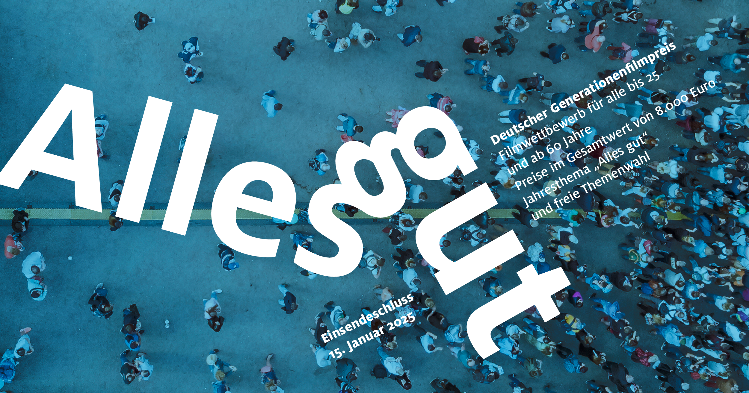 Ab sofort können sich wieder Filmschaffende bis 25 Jahre sowie kreative Köpfe ab 60 Jahre am Deutschen Jugendfilmpreis und Deutschen Generationenfilmpreis beteiligen. Das gemeinsame Jahresthema lautet diesmal „Alles gut“ – ein Motto, das zum Nachdenken, Hinterfragen und kreativen Interpretieren einlädt. Das Bundesfamilienministerium vergibt Preise im Wert von insgesamt 20.000 Euro in den verschiedenen Kategorien und Altersgruppen.